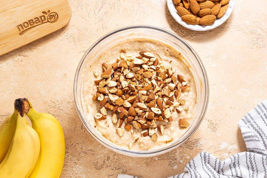 Добавьте крупно порубленные орехи. Еще раз перемешайте.