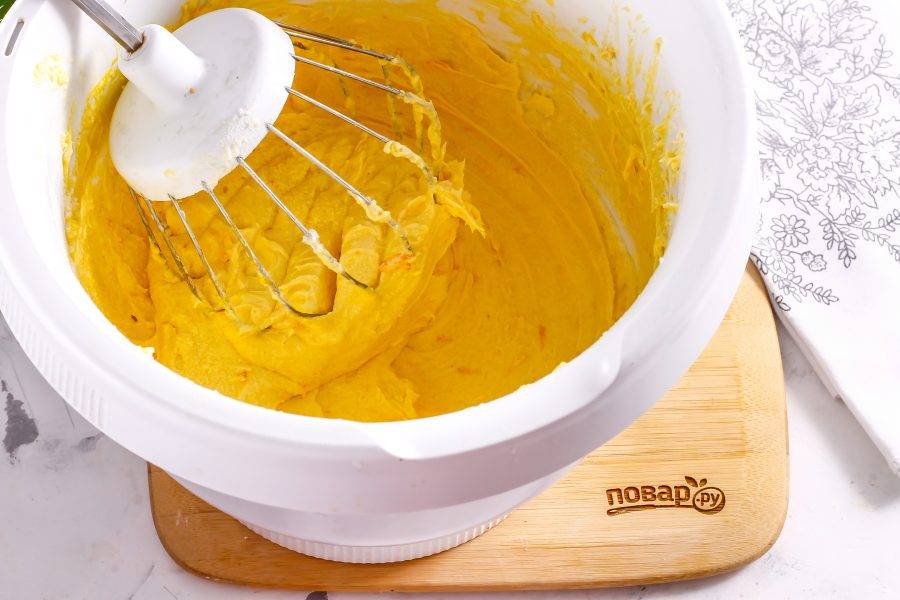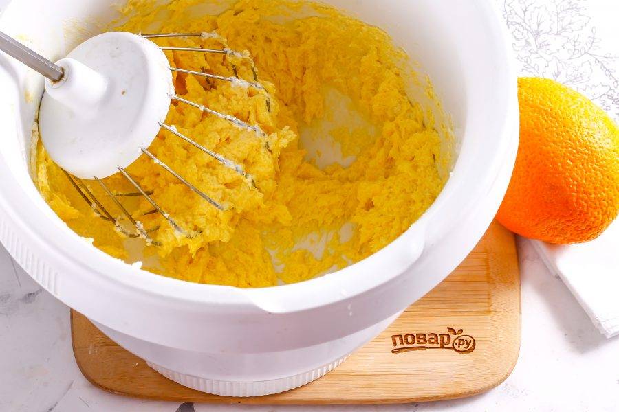 Взбейте масло с сахаром примерно 2 минуты.