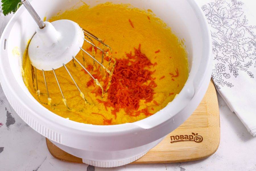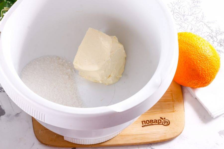 Ошпарьте апельсин и натрите цедру, добавьте ее в емкость и перемешайте.