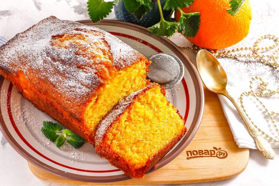 При подаче присыпьте кекс сахарной пудрой и нарежьте ломтиками. Он безумно ароматен и красочен!