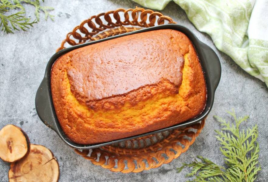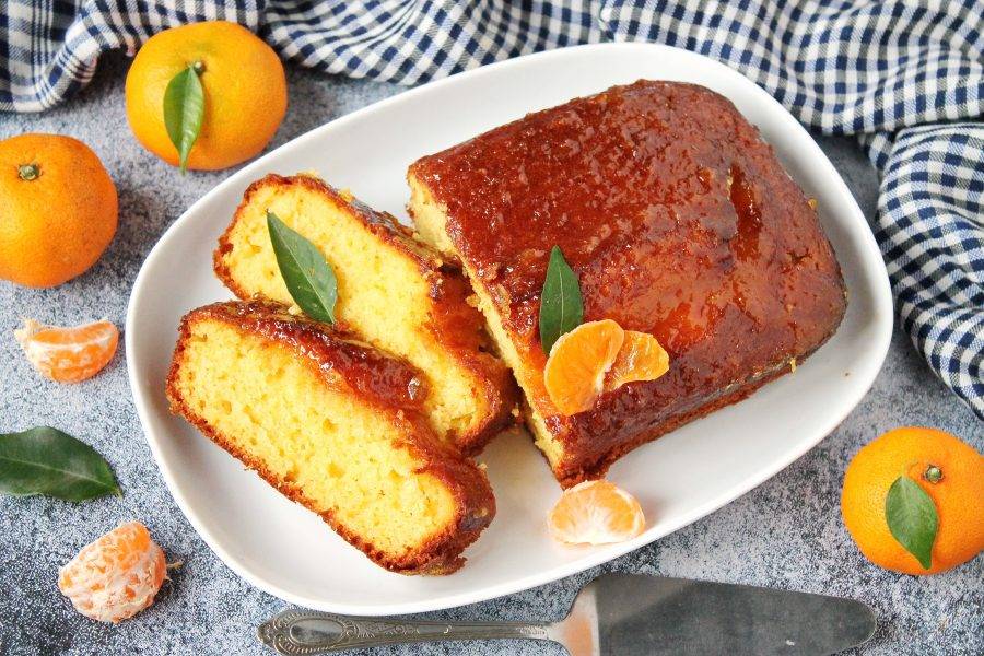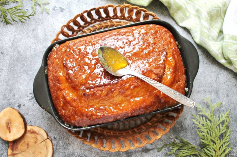 Готовый кекс достаньте из духовки и смажьте верх апельсиновым джемом. Дайте полностью остыть и подавайте к столу.