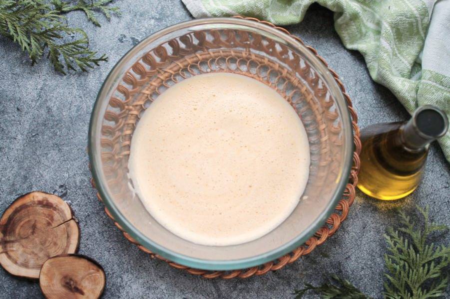 Влейте в миску йогурт и растительное масло, пробейте все блендером в однородную массу, примерно 3 минуты.