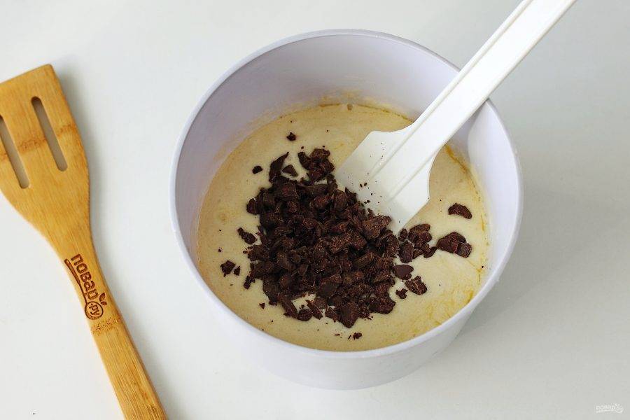 На данном этапе мне захотелось добавить рубленый шоколад. Вы можете пропустить этот момент или добавить что-то свое.