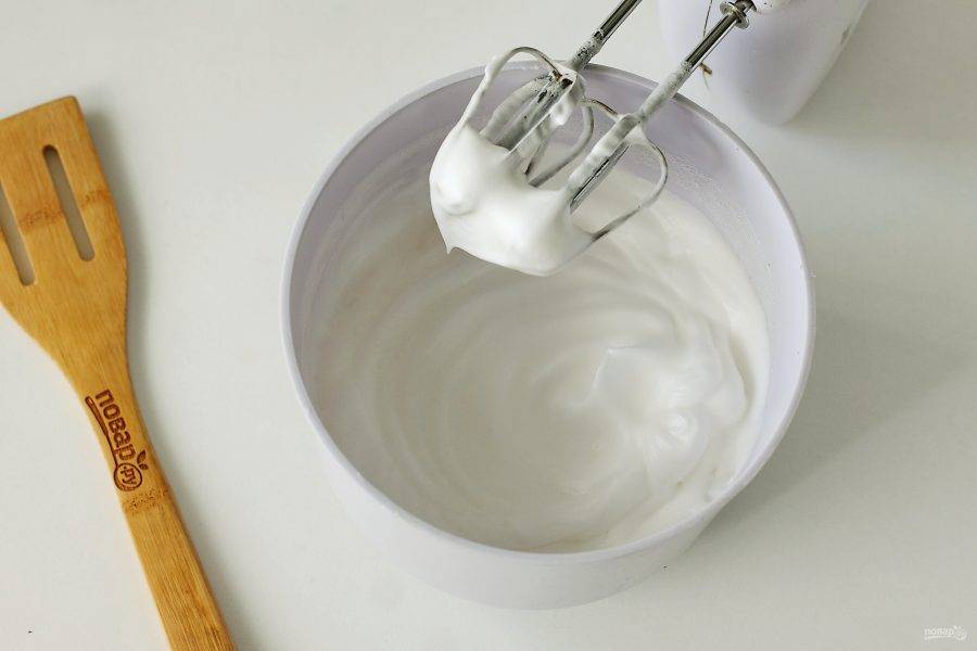 В отдельной миске взбейте белки с 2 ст.л. сахара (от общего количества).