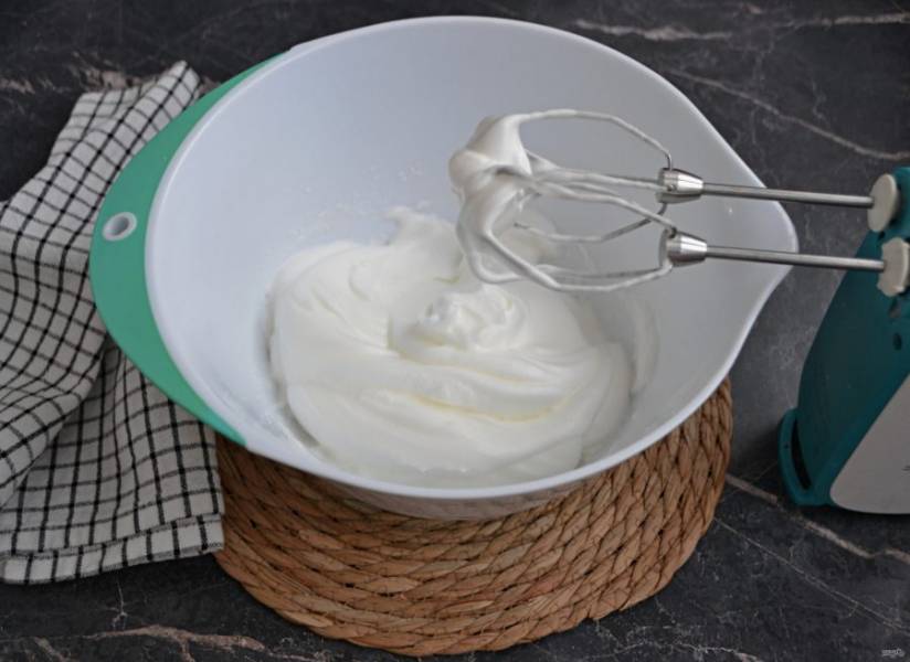 Взбейте белки с щепоткой соли до стойкой и пышной пены.