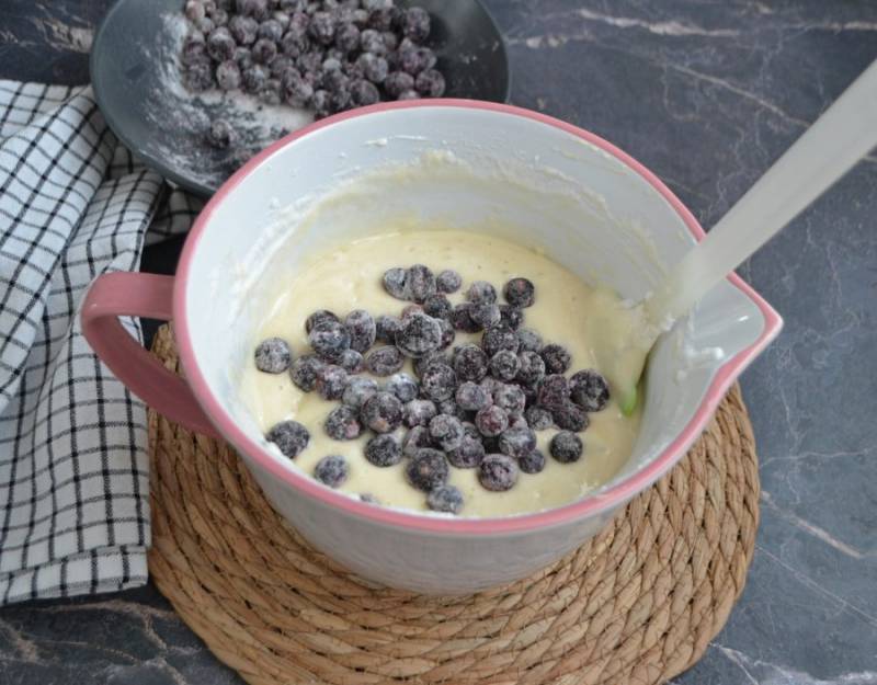 Добавьте ягоды в тесто и аккуратно вмешайте.