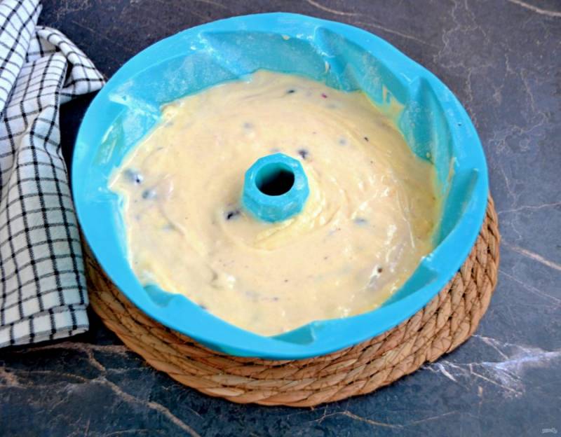 Выложите тесто в форму, разровняйте. Выпекайте при температуре 180 градусов 50-60 минут, готовность проверяйте деревянной шпажкой.