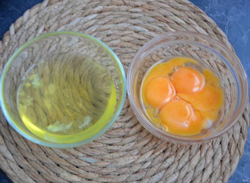 Отделите белки и желтки 4х яиц в разные миски.