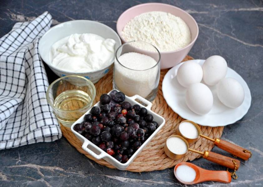 Подготовьте ингредиенты по списку к рецепту. В рецепте использована смесь голубики и черной смородины.