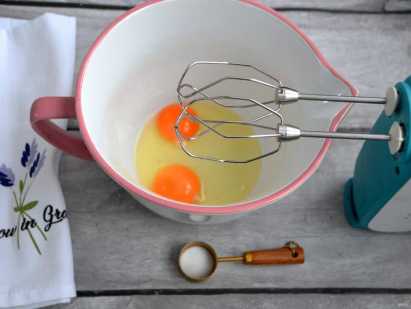 В миске для смешивания взбейте 2 яйца с щепоткой соли.