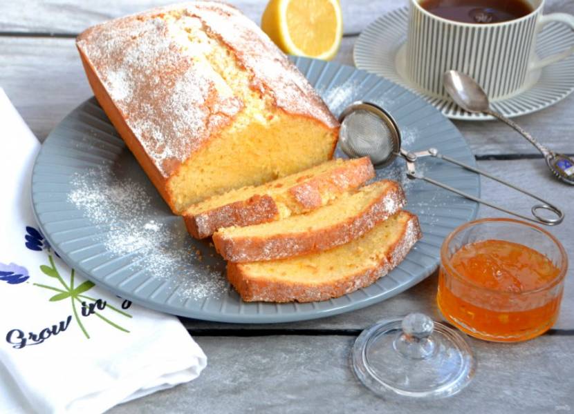 Перед подачей кекс можно слегка посыпать сахарной пудрой. Он получился очень нежным и вкусным с легкой цитрусовой ноткой, просто наслаждение!