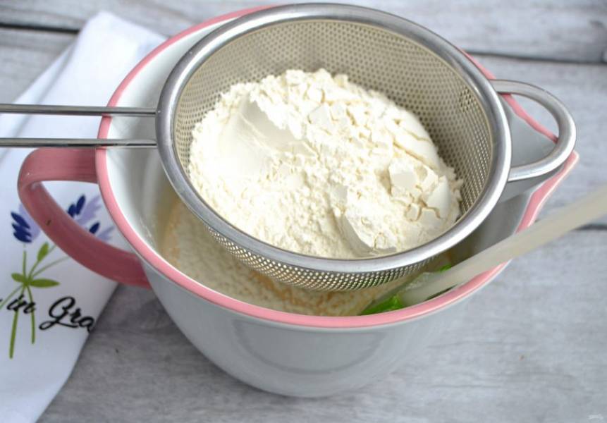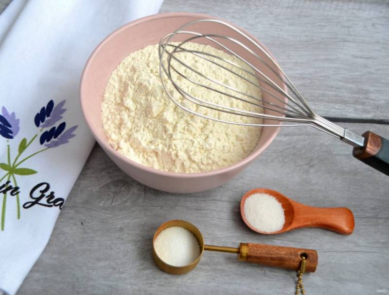 Смешайте муку, разрыхлитель и ванильный сахар.