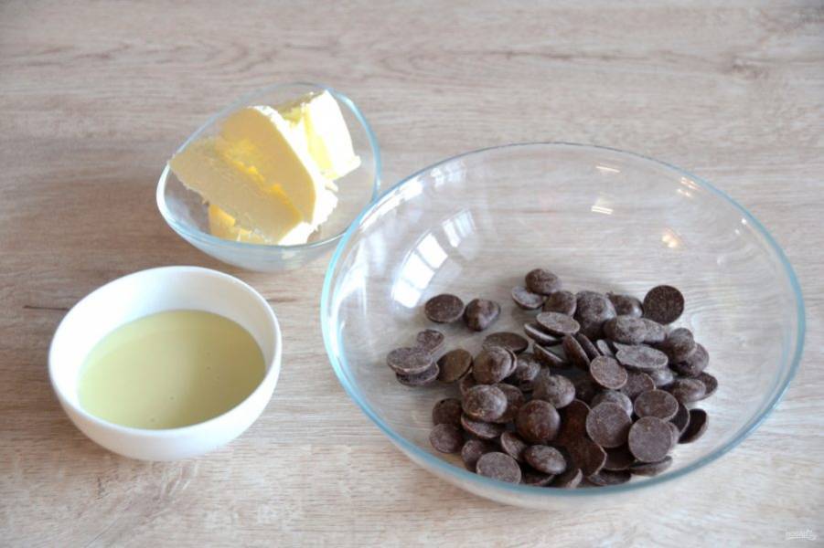 Для приготовления шоколадного ганаша приготовьте сливочное масло, сгущенное молоко и шоколад.