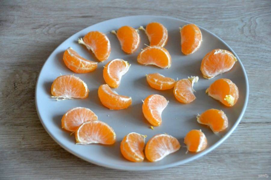 Заранее разберите на дольки 2 мандарина и слегка подсушите его, в течение часа.