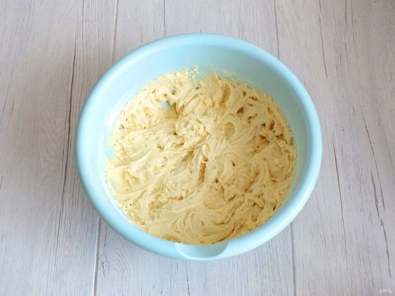 Взбейте миксером тесто в пышную массу. Отставьте в сторону.