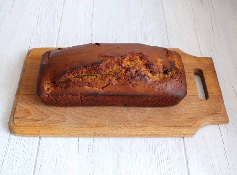 Переложите на доску или блюдо. Если вы выпекали в бумаге, то ее лучше снять, когда кекс остынет. Хорошо охладите выпечку, а лучше дайте "созреть" кексу в течение суток. Это желательно, но необязательно.