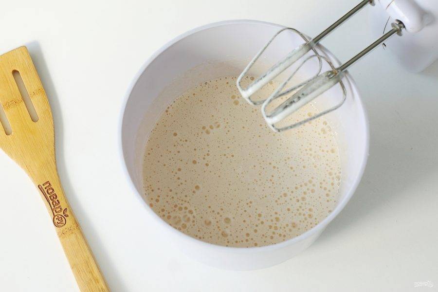 Насыпьте муку и разрыхлитель. Перемешайте все до однородного состояния.