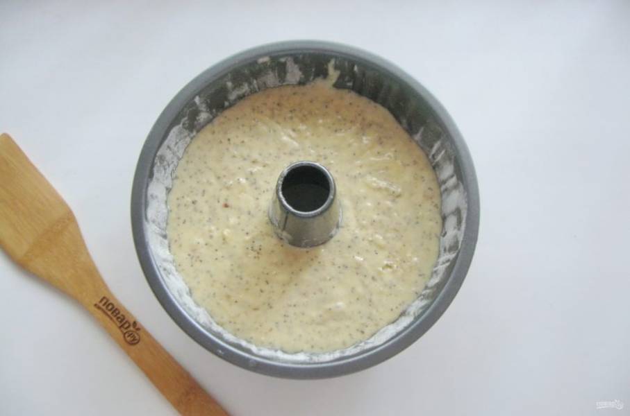 Форму для кексов смажьте маслом и посыпьте мукой. Выложите тесто.