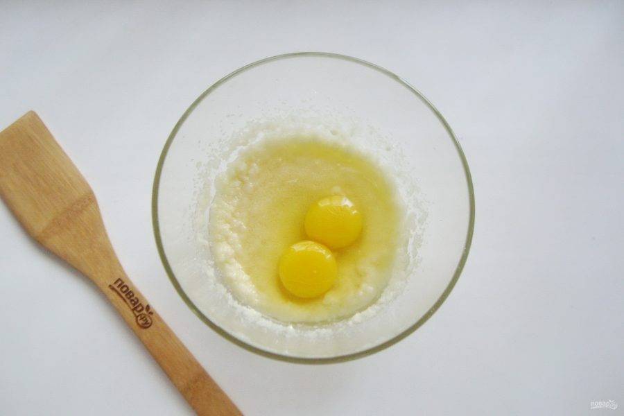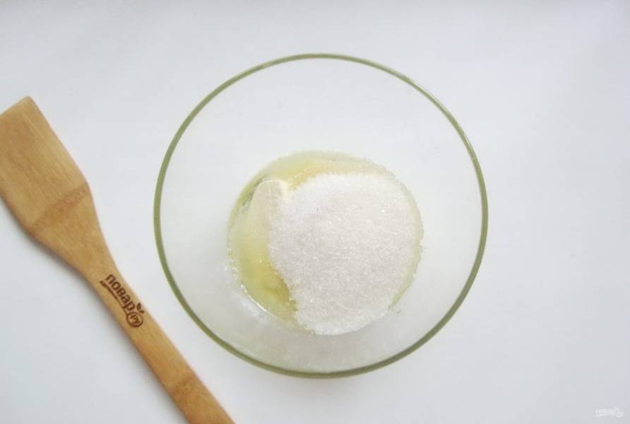 Добавьте сахар и взбейте с маслом.