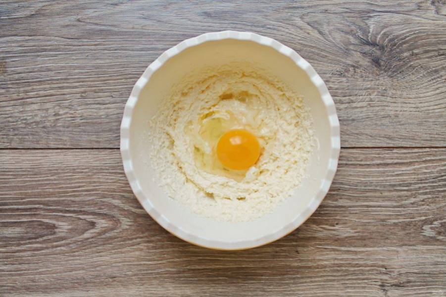 Разбейте в миску со взбитым маслом яйцо, взбейте до пышной массы.