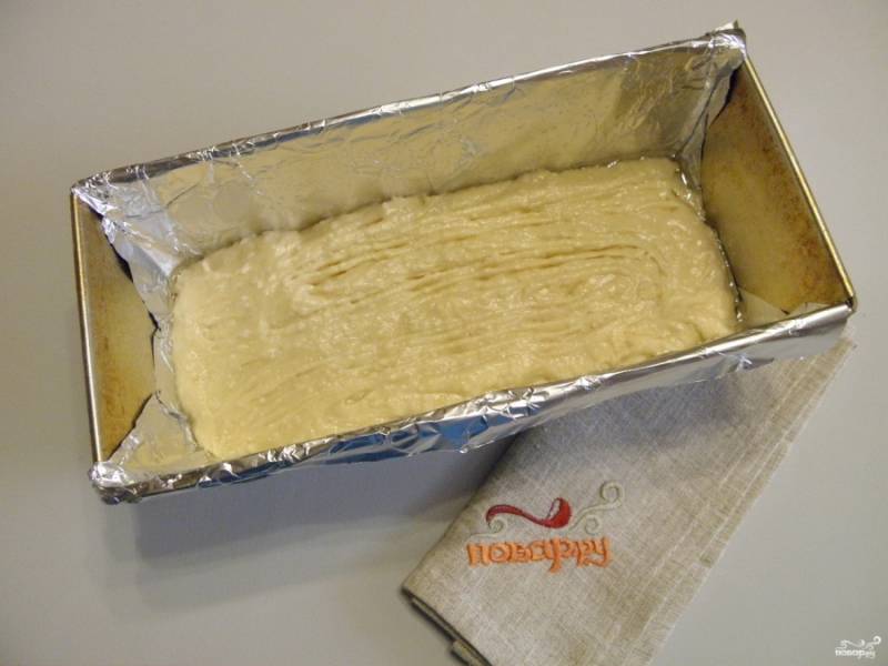 5. В смазанную маслом форму для выпечки кексов переложите тесто, разровняйте его аккуратно.
