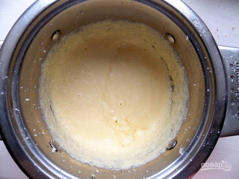 Продолжайте взбивать, добавляйте по одному яйцу.
