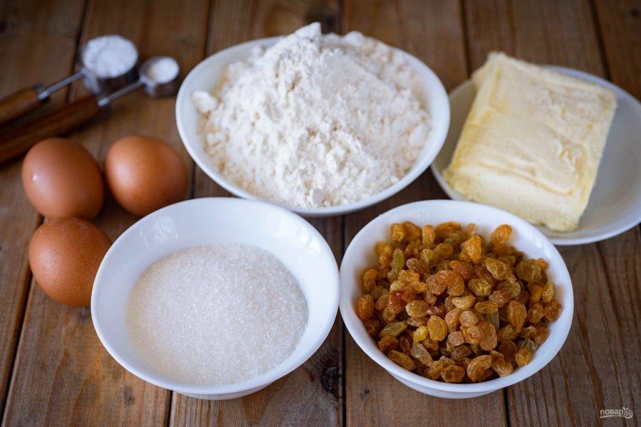 Все ингредиенты выложите на стол заранее. Масло сливочное лучше достать из холодильника примерно за час. Чтобы оно стало мягким.