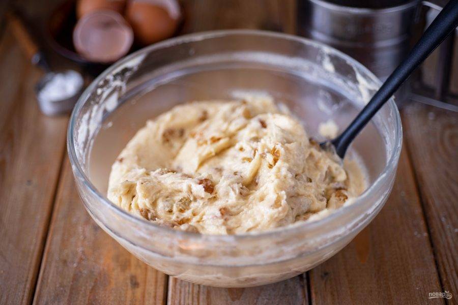 Вмешайте его лопаткой до равномерного распределения по массе.