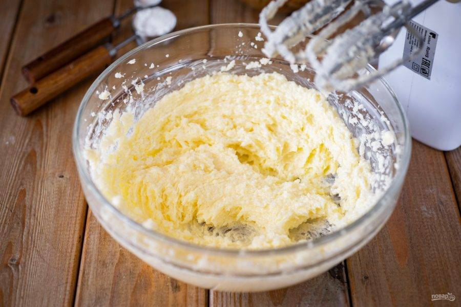 Взбивайте миксером эти ингредиенты до кремообразного состояния.
