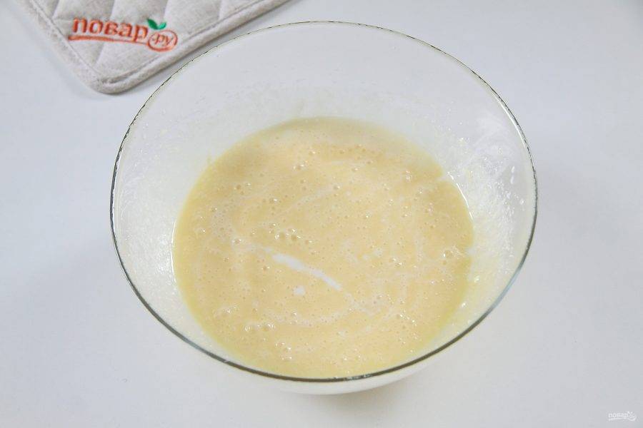 2. Взбейте в глубокой миске яйца, сахар и ванилин.