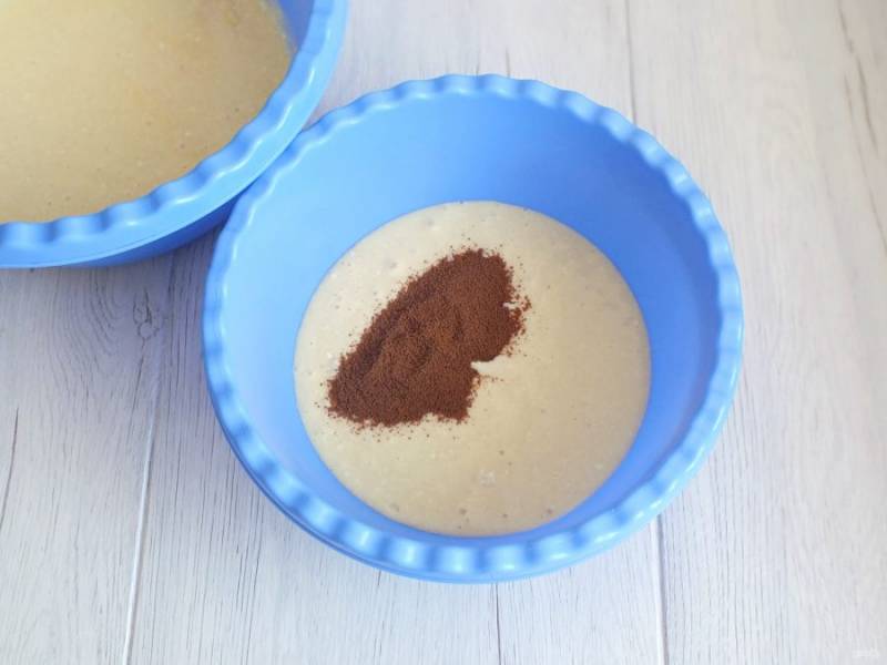 Отлейте в другую чашу 1/2 теста, добавьте какао.