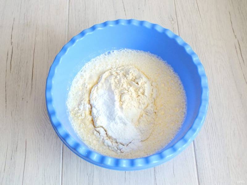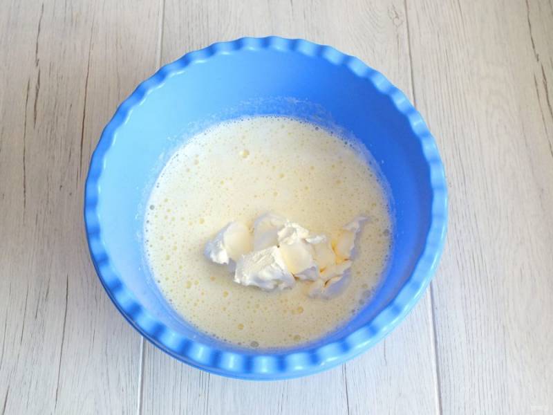 Добавьте мягкое сливочное масло, молоко и еще раз хорошо взбейте.