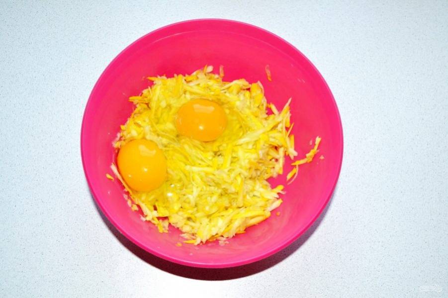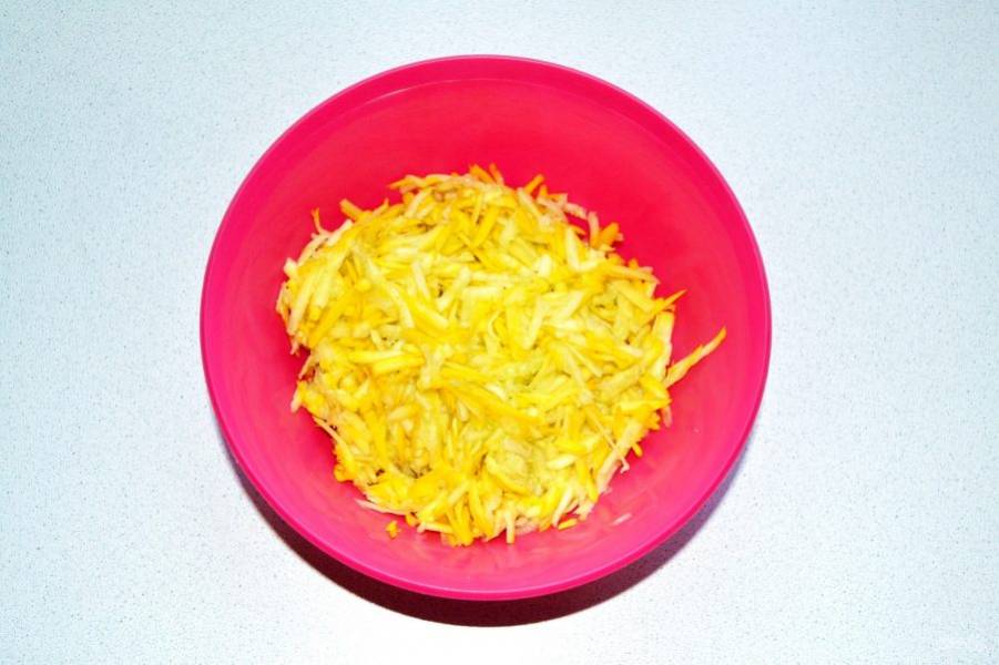 Натрите его терке и оставьте минут на 10. После отожмите и слейте лишнюю жидкость.