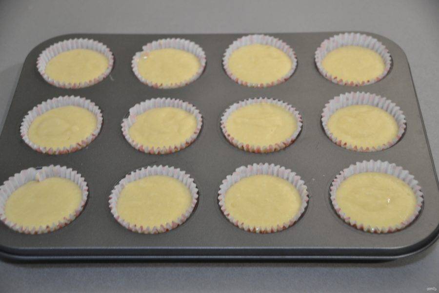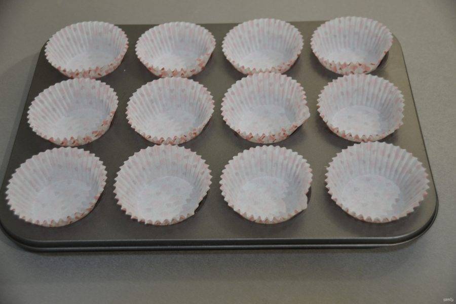 Подготовьте формочки для выпечки, объем теста рассчитан на 12 кексиков.