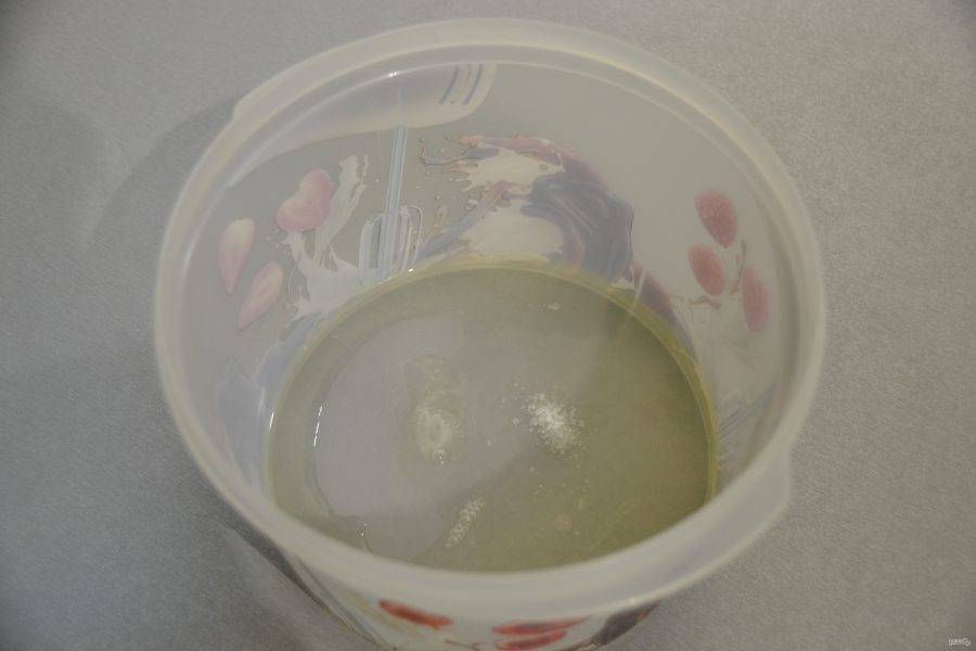 Перемешайте все жидкие ингредиенты, миксер здесь не требуется.