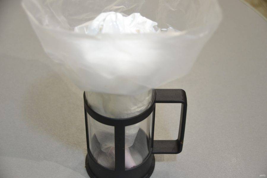 Переложите заварной белковый крем в кондитерский мешок.