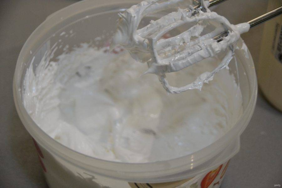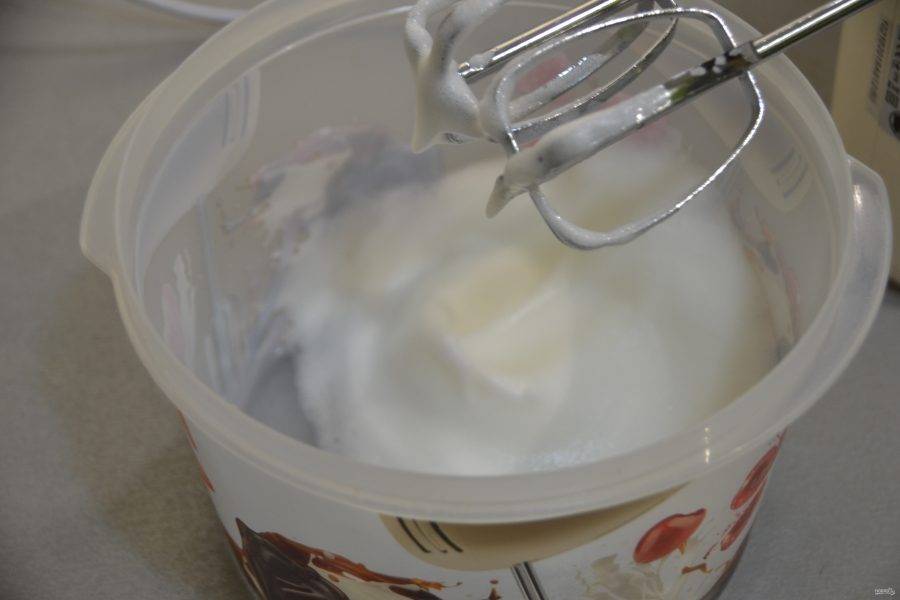 Взбивайте белки с сахарным сиропом до стойких пиков.