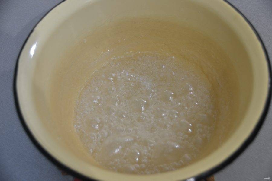 Для приготовления заварного белкового крема соедините 30 миллилитров воды и 115 граммов сахарного песка. Поставьте на средний огонь, на четвертой минуте нагревания добавьте несколько капель лимонного сока, варить сироп следует 8 минут с момента закипания.