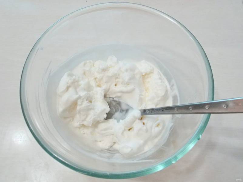 Мороженое выложите в чашу и перемешивайте ложкой до мягкого состояния.