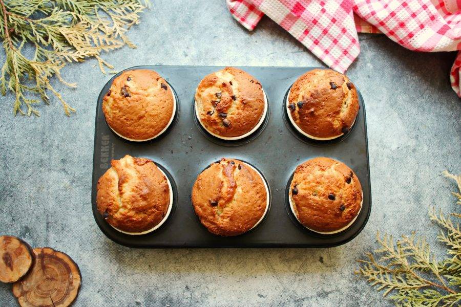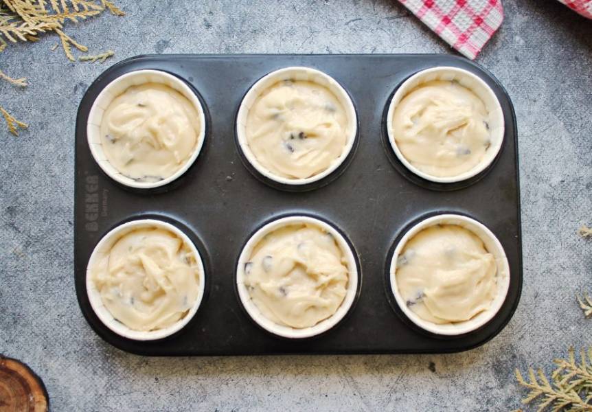 Разложите тесто в бумажные формочки на 2/3 высоты.