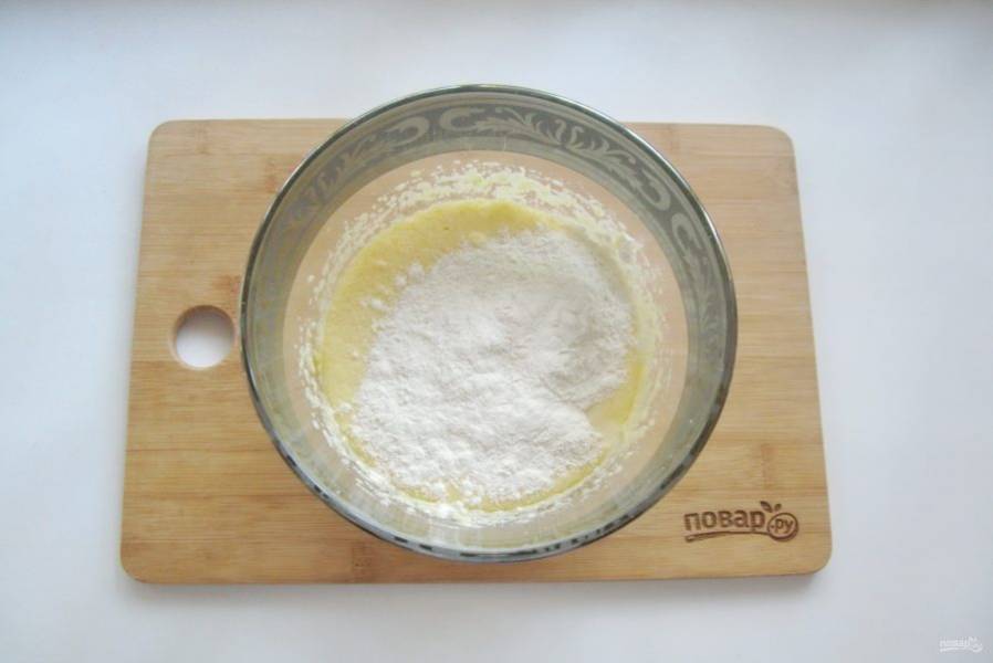 По одному добавьте яйца, хорошо взбейте масло с сахаром и яйцами.