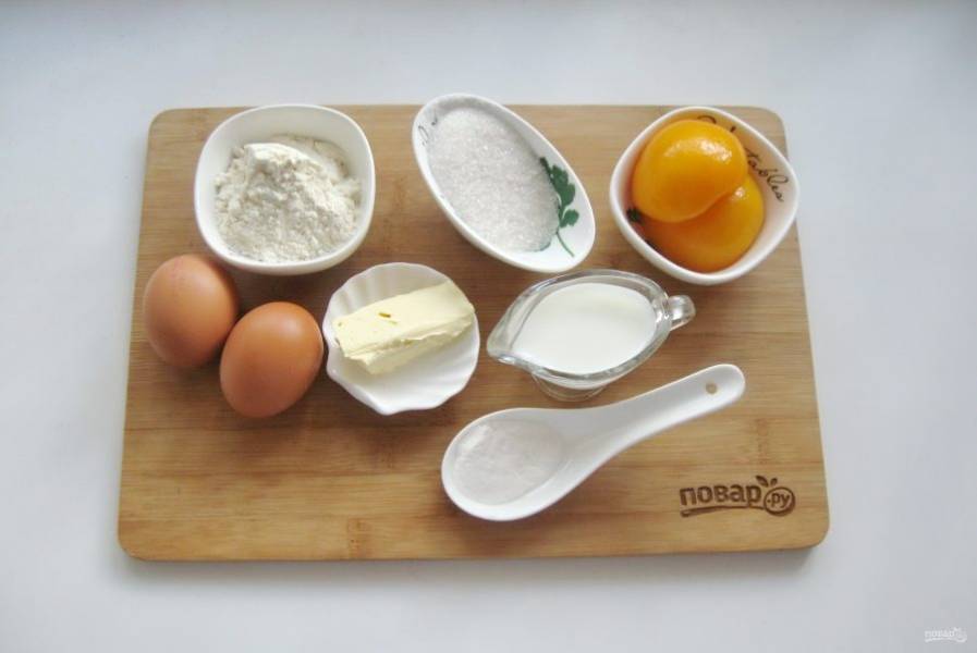 Тесто разложите в формочки для кексов. Консервированные персики нарежьте дольками и выложите на тесто.
