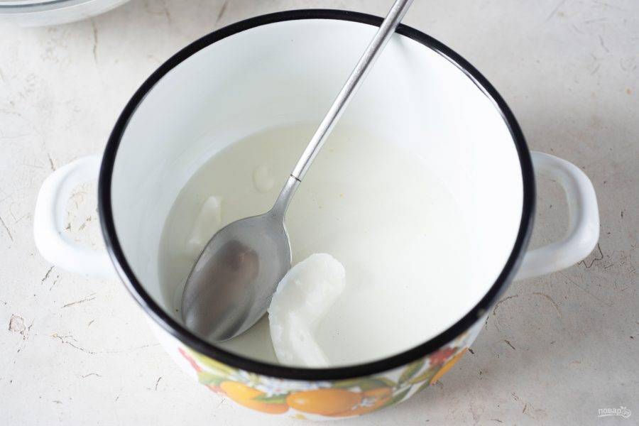 В удобной кастрюльке или сотейнике на маленьком огне растопите кокосовое масло.