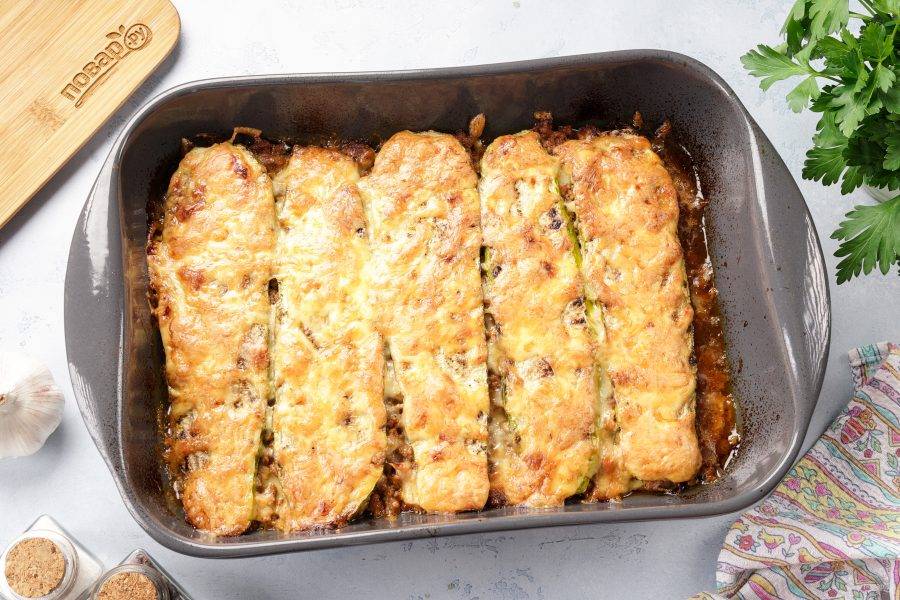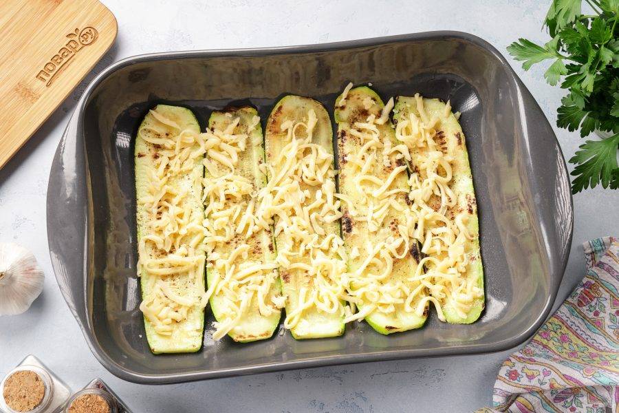 Посыпьте кабачки тёртым сыром.