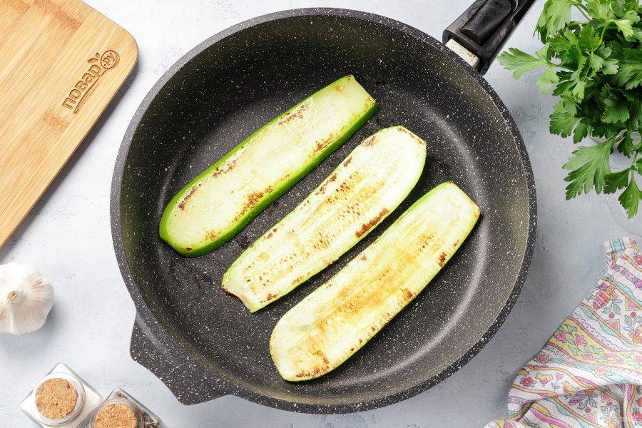 Обжарьте кабачки в сухой сковороде с двух сторон.
