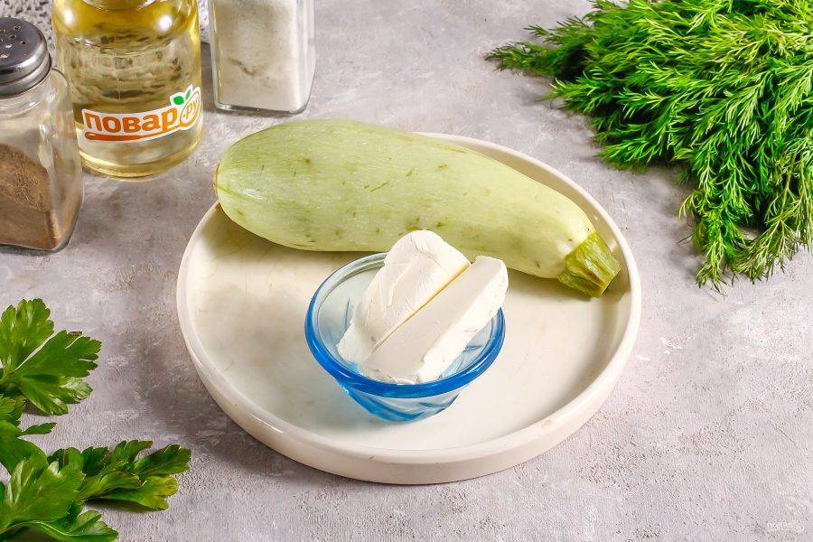 Подготовьте указанные ингредиенты. Вместо сливочного масла можно использовать качественное кокосовое для еды. Кабачок приобретите молоденький, без плотной кожуры и семян внутри.