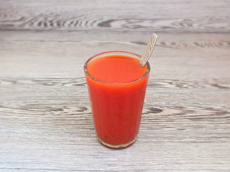 В 200 граммовый стакан переложите томатную пасту и залейте водой до верху. Перемешайте.