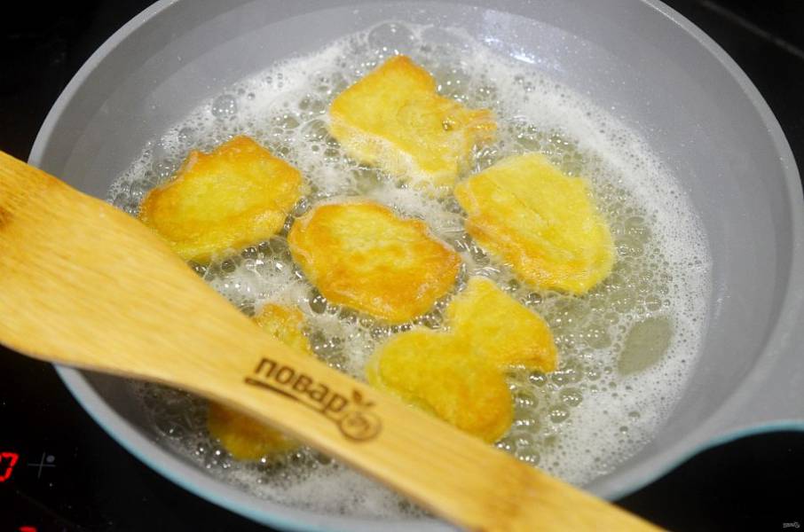5. Обжаривайте в кипящем масле до золотистого состояния.