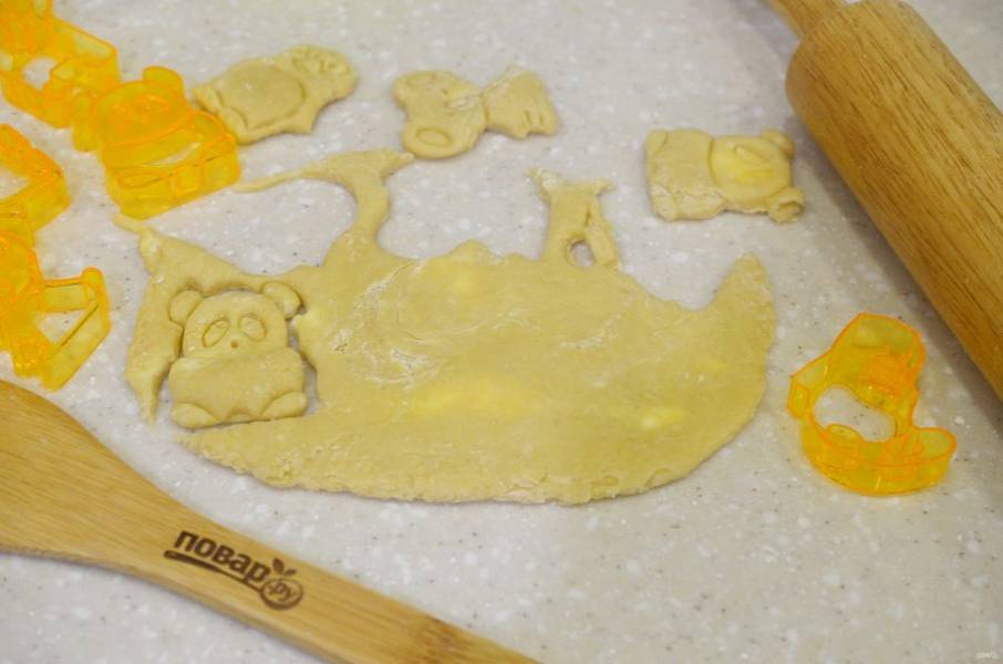 4. Тесто раскатайте толщиной 5 мм и вырубите различные фигурки.