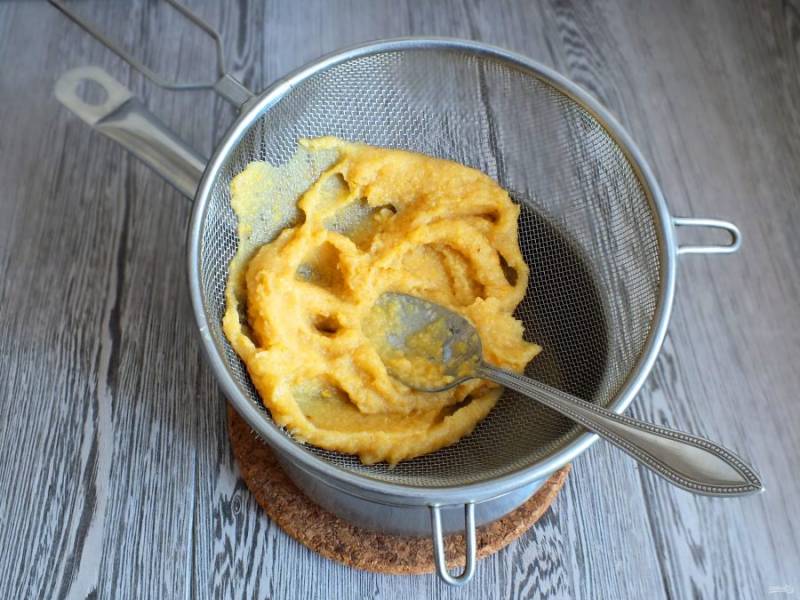 Пюре протрите через сито в отвар, в котором варилась айва.